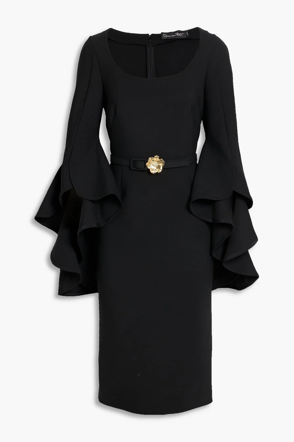 Dress wool-blend crepe detachable belt ruffled sleeves back vent concealed hook and zip fastening at back mid-weight, slightly stretchy fabric dry clean made in italy 94% Virgin Wool 5% Elastane 1% Other Fibres Product Code 46376663163055763