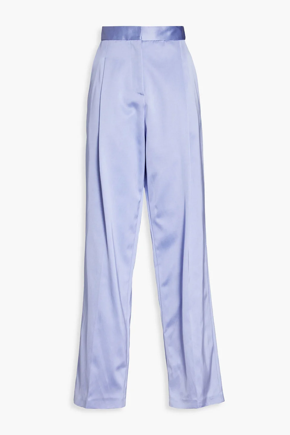 Straight-leg pants satin-twill pleated high-rise cut concealed hook and zip fastening at front mid-weight, non-stretchy fabric dry clean made in italy 54% Viscose 46% Cotton Product Code 1647597331281107