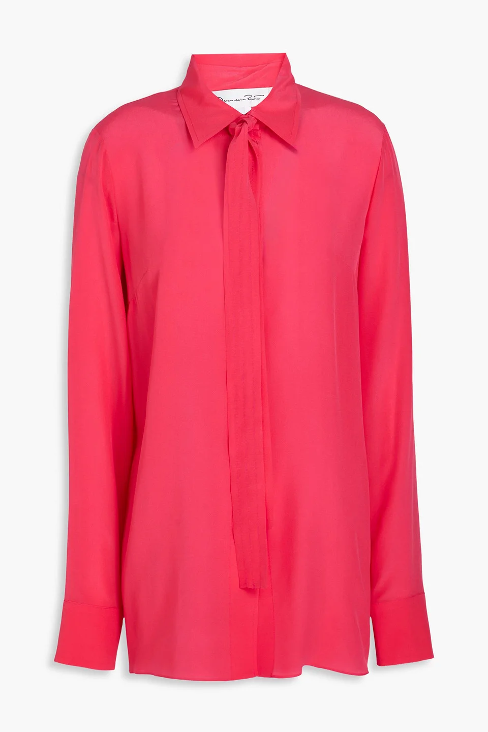 Blouse silk crepe de chine detachable necktie buttoned cuffs button fastenings through front lightweight, non-stretchy fabric dry clean made in italy 100% Silk Product Code 1647597357319809