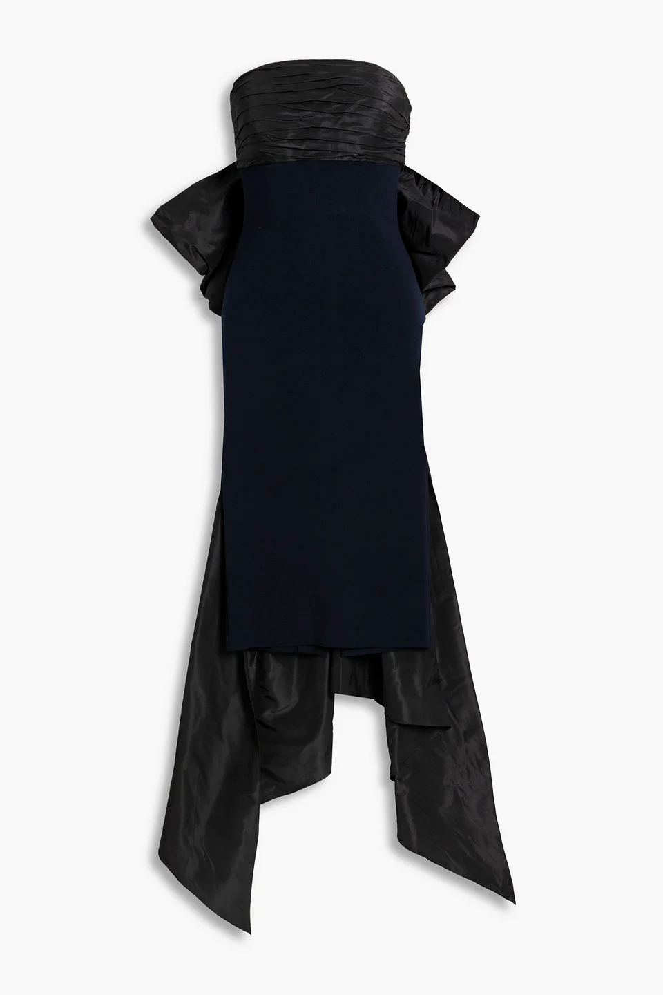 Strapless bow-embellished silk-taffeta and stretch-knit dress