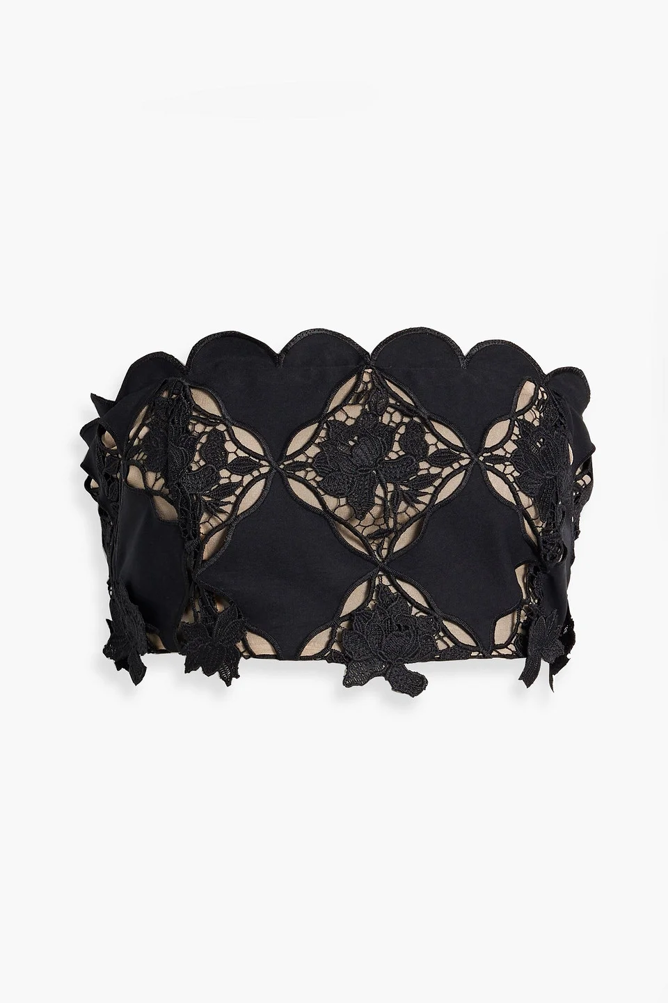 Strapless top guipure lace scalloped trims cropped concealed hook and zip fastening at back fully lined mid-weight, non-stretchy fabric dry clean made in italy 80% Polyester 20% Cotton Product Code 1647597359550280