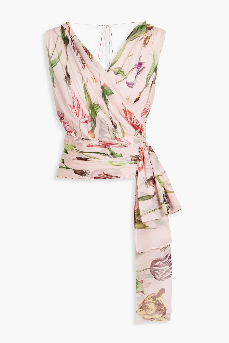 Top floral-print silk-chiffon wrap-effect draped ties at back concealed zip fastening along back mid-weight, non-stretchy fabric dry clean made in italy 100% Silk Product Code 1647597331308335