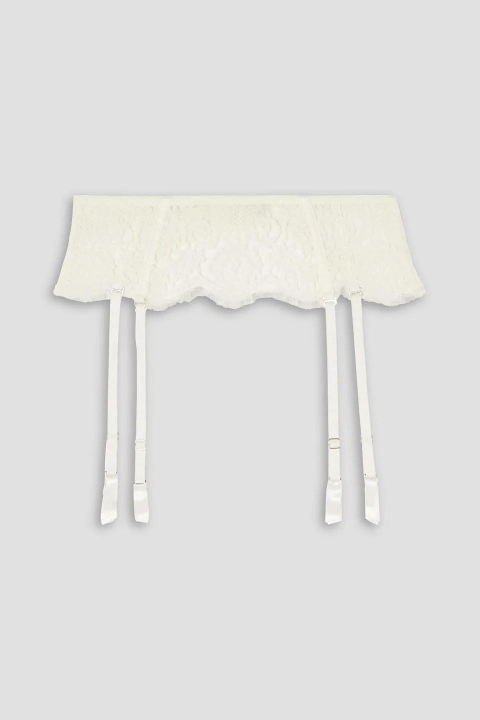 Suspender belt lace cotton-blend satin trims hook fastenings at back machine wash or dry clean imported At the heart of our work process stands out the laboratory of ideas, our creative team, says I.D. Sarrieri, adding that they always aim to achieve the best. Made in a process that takes hours of work and attention to detail, this suspender belt is cut from cream lace with some cotton and silk in the blend. Attach the adjustable satin straps to a new pair of stockings. 50% Cotton 40% Polyamide 5% Elastane 5% Silk Product Code 1647597349126593