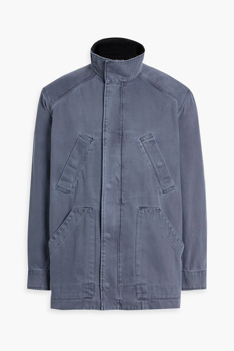 Jacket cotton-twill snap-fastening cuffs chest pockets front slant pockets concealed snap and zip fastenings through front mid-weight, non-stretchy fabric dry clean imported 50% Cotton 50% Recycled cotton Product Code 46376663163018765