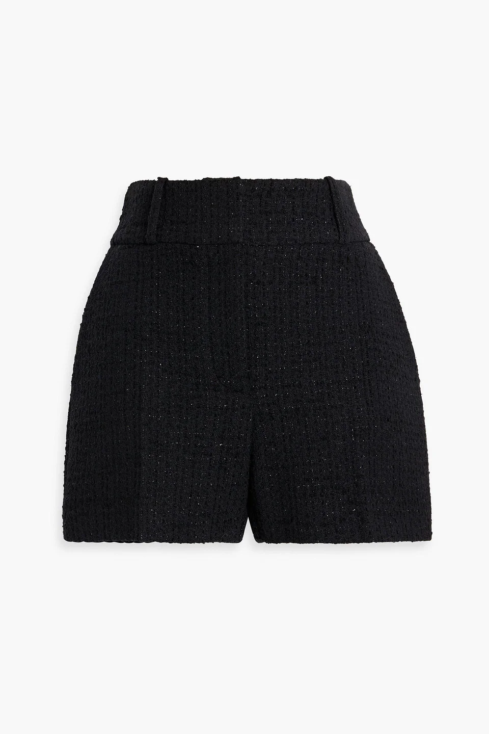 Shorts metallic tweed cotton-blend belt loops high-rise cut two front slant pockets two back welt pockets concealed hook and zip fastening at front mid-weight, non-stretchy fabric dry clean imported 51% Cotton 27% Polyester 12% Textile fibers 10% Viscose Product Code 46376663162845609