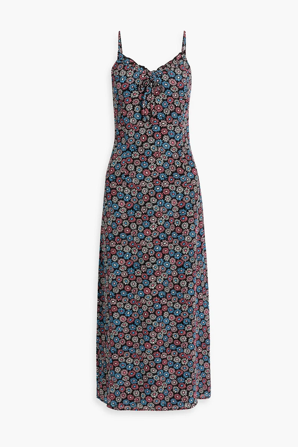 Dress floral-print crepe de chine ruffled trims bow-detailed adjustable straps back slit concealed zip fastening along side fully lined mid-weight, slightly stretchy fabric dry clean imported 98% Viscose 2% Elastane Product Code 1647597340490132