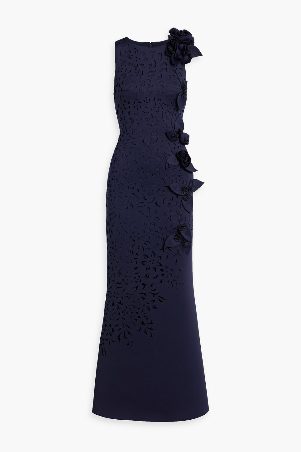 Appliquéd laser-cut scuba gown