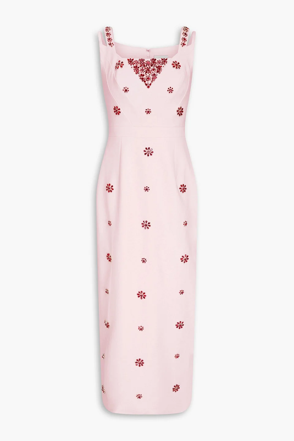 Dress crepe crystals back slit concealed hook and zip fastening at back fully lined mid-weight, non-stretchy fabric dry clean imported 81% Recycled polyester 13% Viscose 6% Elastane Product Code 46376663162891773