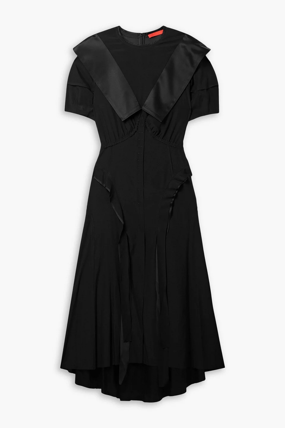 Dress stretch-silk satin trims gathered ruffled asymmetric hem concealed hook and zip fastening at back mid-weight, stretchy fabric hand wash Commission's 'Assembly' dress is designed in a deconstructed silhouette with satin trims that mimic the look of lapels both front and back. It's made from stretch-silk that nips in gently at the waist before falling to an asymmetric floaty skirt traced with cascading ruffles. Wear yours with heels or pare it back to sneakers and socks for a more laid-back take. 96% Silk 4% Elastane Product Code 33258524072560504