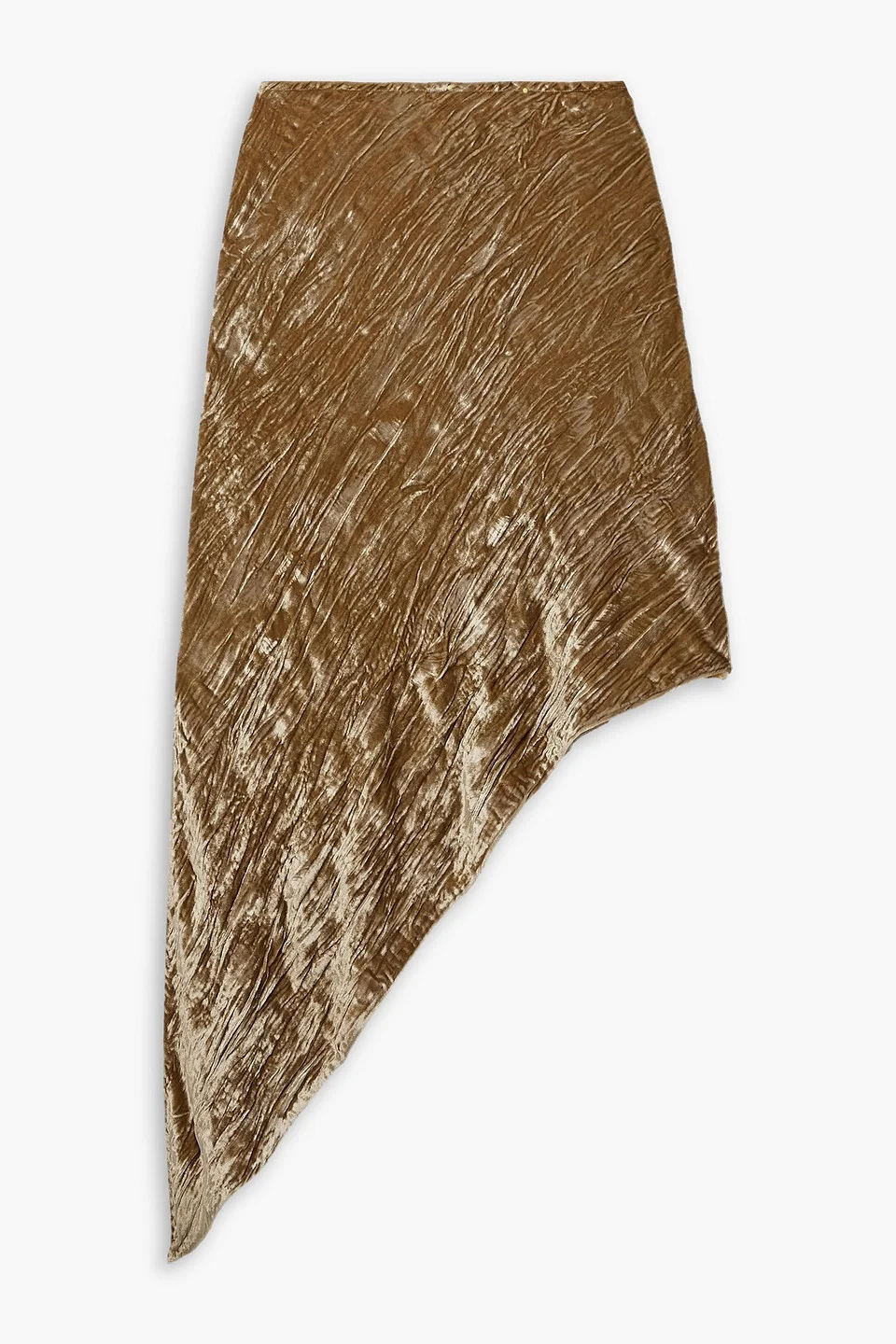 Skirt velvet crinkled asymmetric hem concealed zip fastening along side mid-weight, non-stretchy fabric dry clean made in italy Petar Petrov's skirt is cut on the bias from crinkled-velvet and has an asymmetric hem. It sits comfortably on your natural waist and is lined in smooth silk. Wear it with a bodysuit and knee boots. 80% Viscose 20% Silk Product Code 1647597346486420