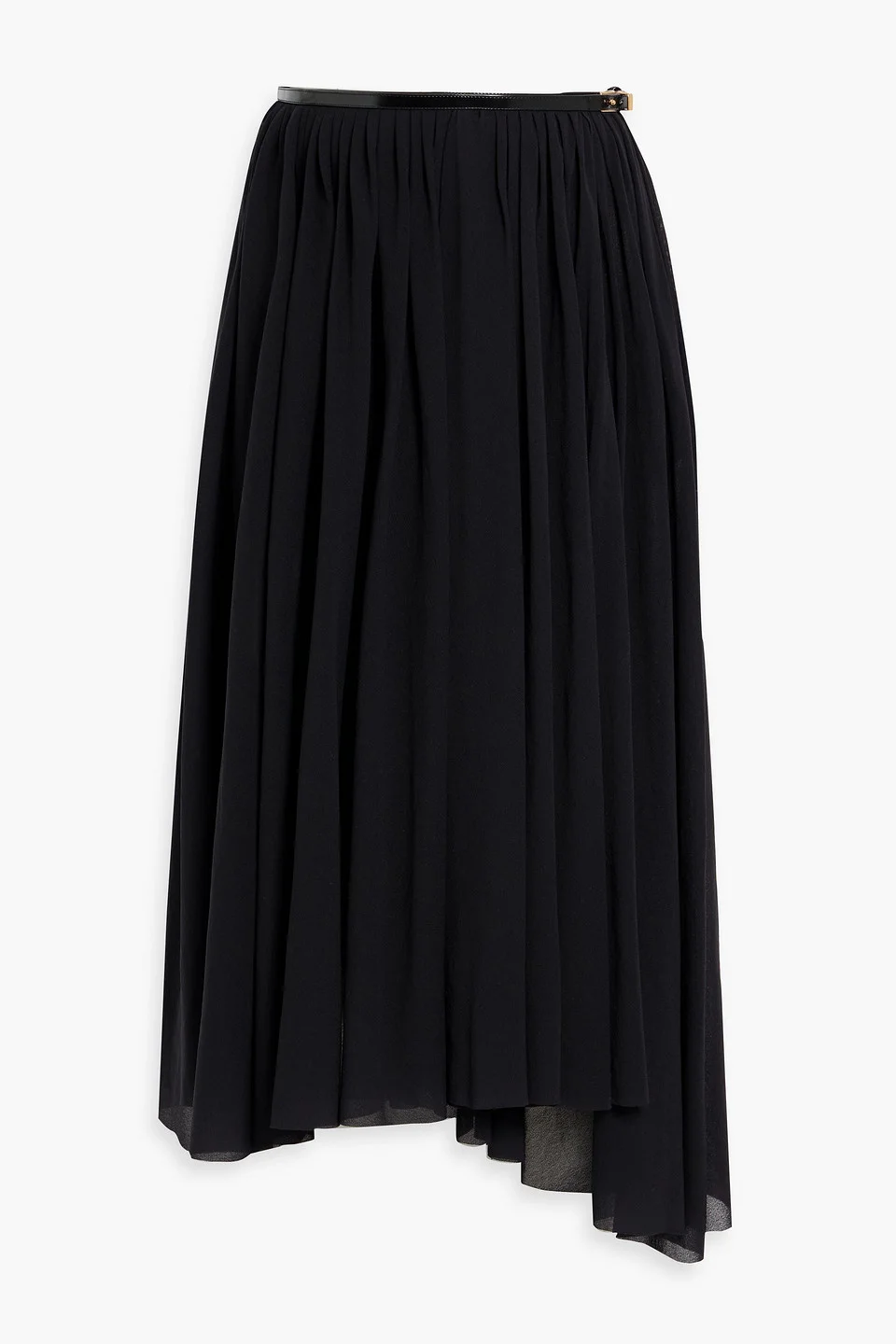 Asymmetric pleated mesh midi skirt