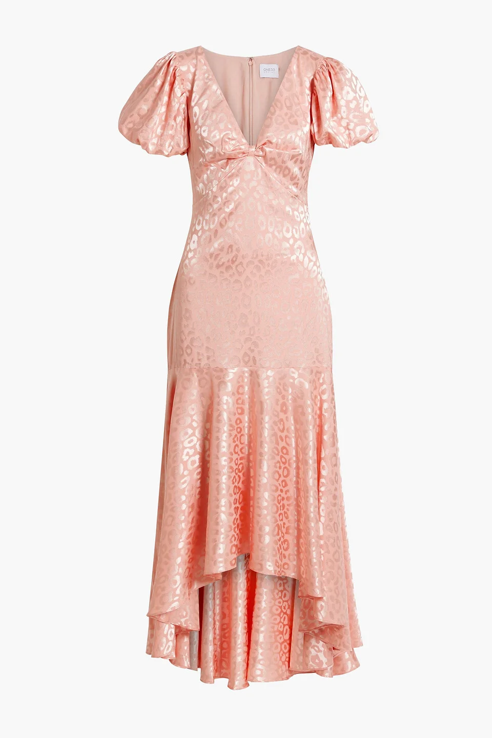 Dress satin-jacquard ruched gathered sleeves asymmetric hem concealed hook and zip fastening at back non-stretchy fabric mid-weight fabric hand wash imported 96% Polyester 4% Spandex Product Code 1647597318811984