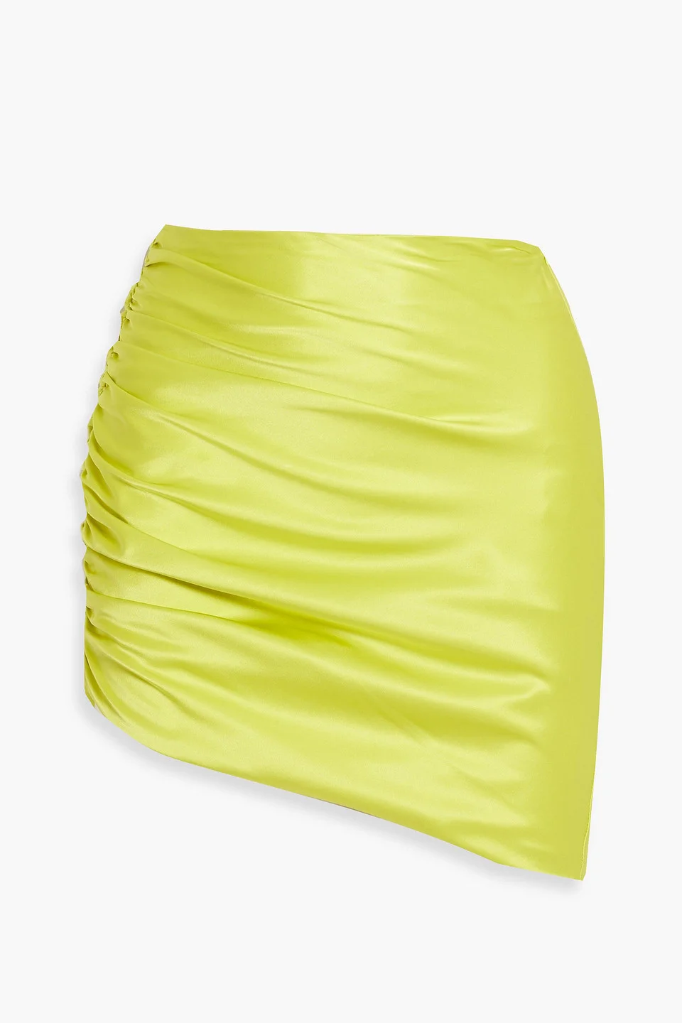 Asymmetric ruched silk-satin mini skirt