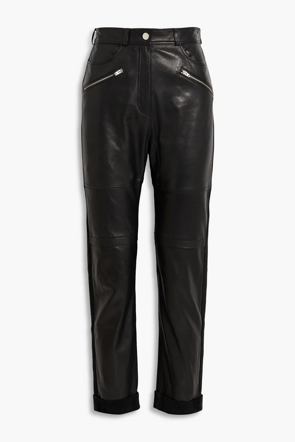 Straight-leg pants leather zip pockets belt loops high-rise cut button and concealed zip fastening at front supple, non-stretchy leather specialist clean imported 100% Lambskin Product Code 1647597357161257