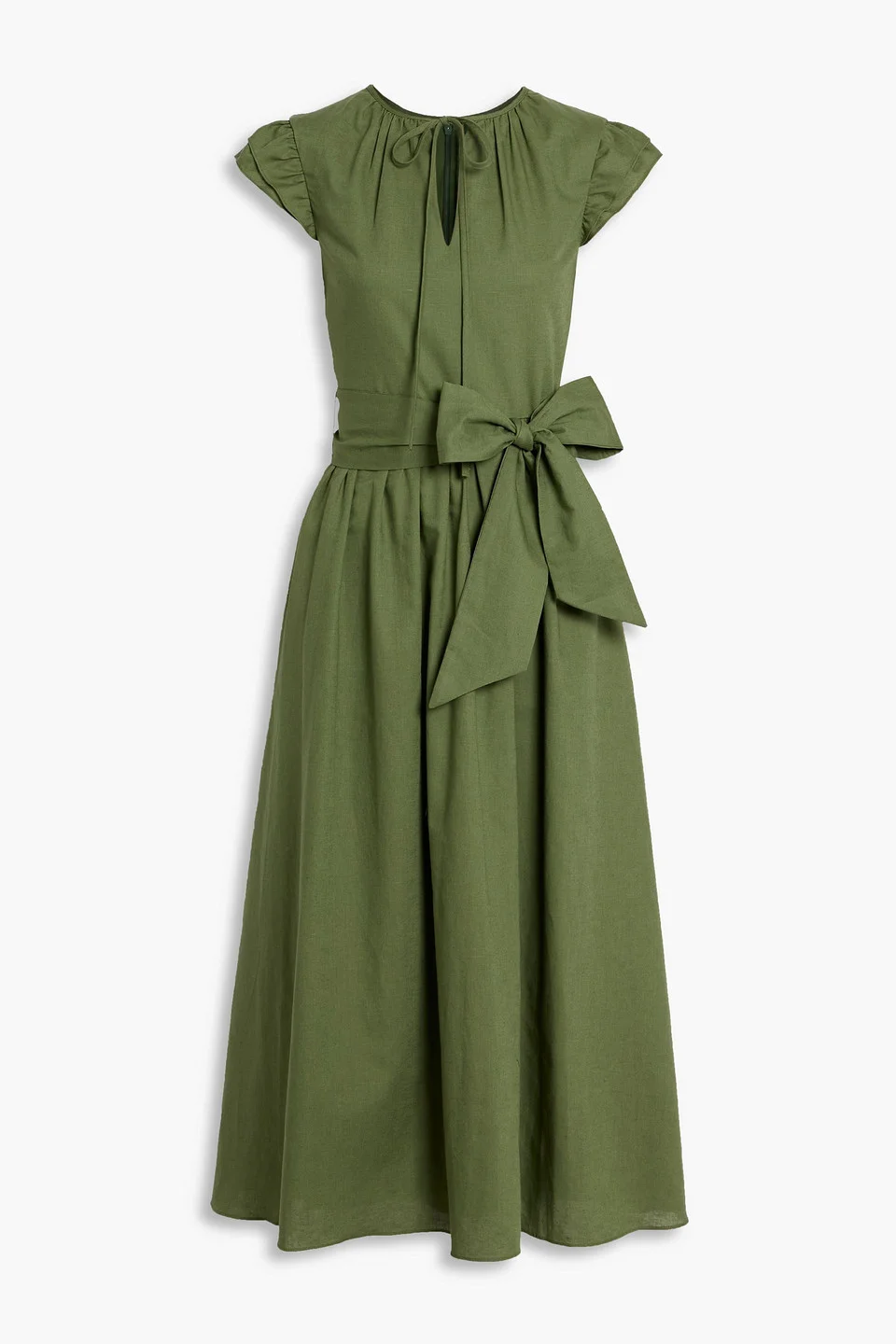 Belted cotton and linen-blend midi dress