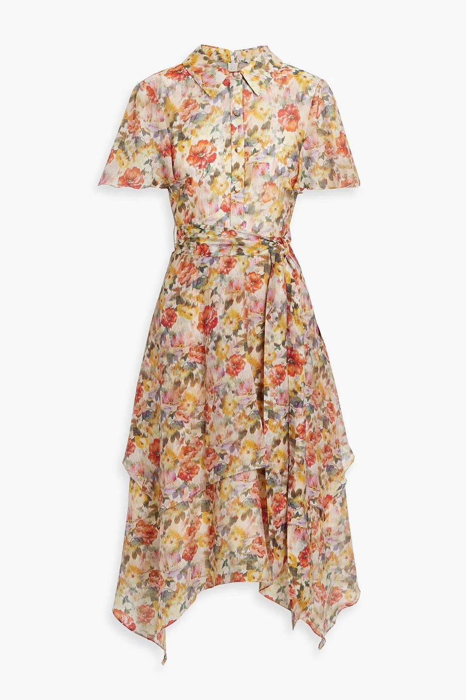 Shirt dress floral-print voile button-embellished detachable waist tie handkerchief hem concealed hook and zip fastening at back fully lined lightweight, non-stretchy fabric dry clean imported 75% Polyester 25% Nylon Product Code 46376663162885787