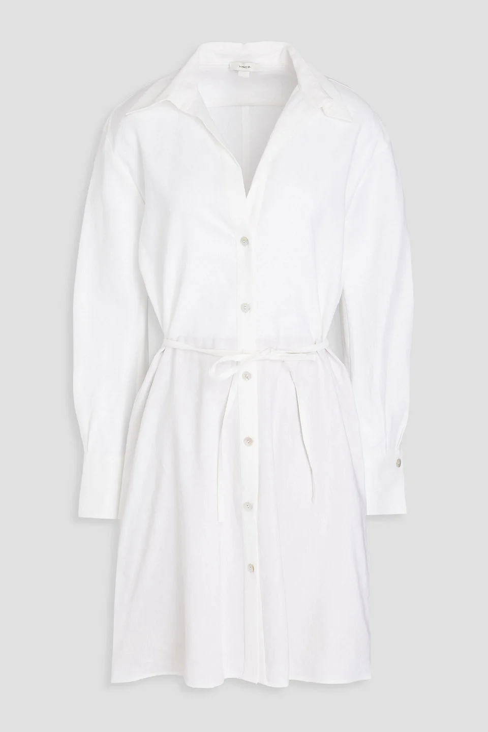 Shirt dress linen-blend mother-of-pearl buttons detachable waist tie buttoned cuffs button fastenings through front partially lined hand wash or dry clean imported 64% Linen 33% Viscose 3% Spandex 0% Trochus Niloticus (wild): China Product Code 1647597337823929