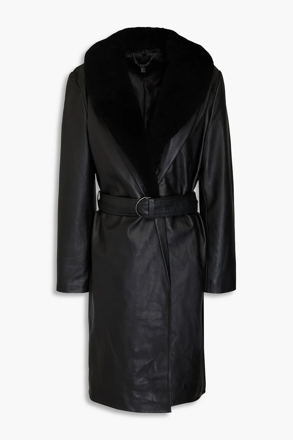 Belted shearling-trimmed leather coat