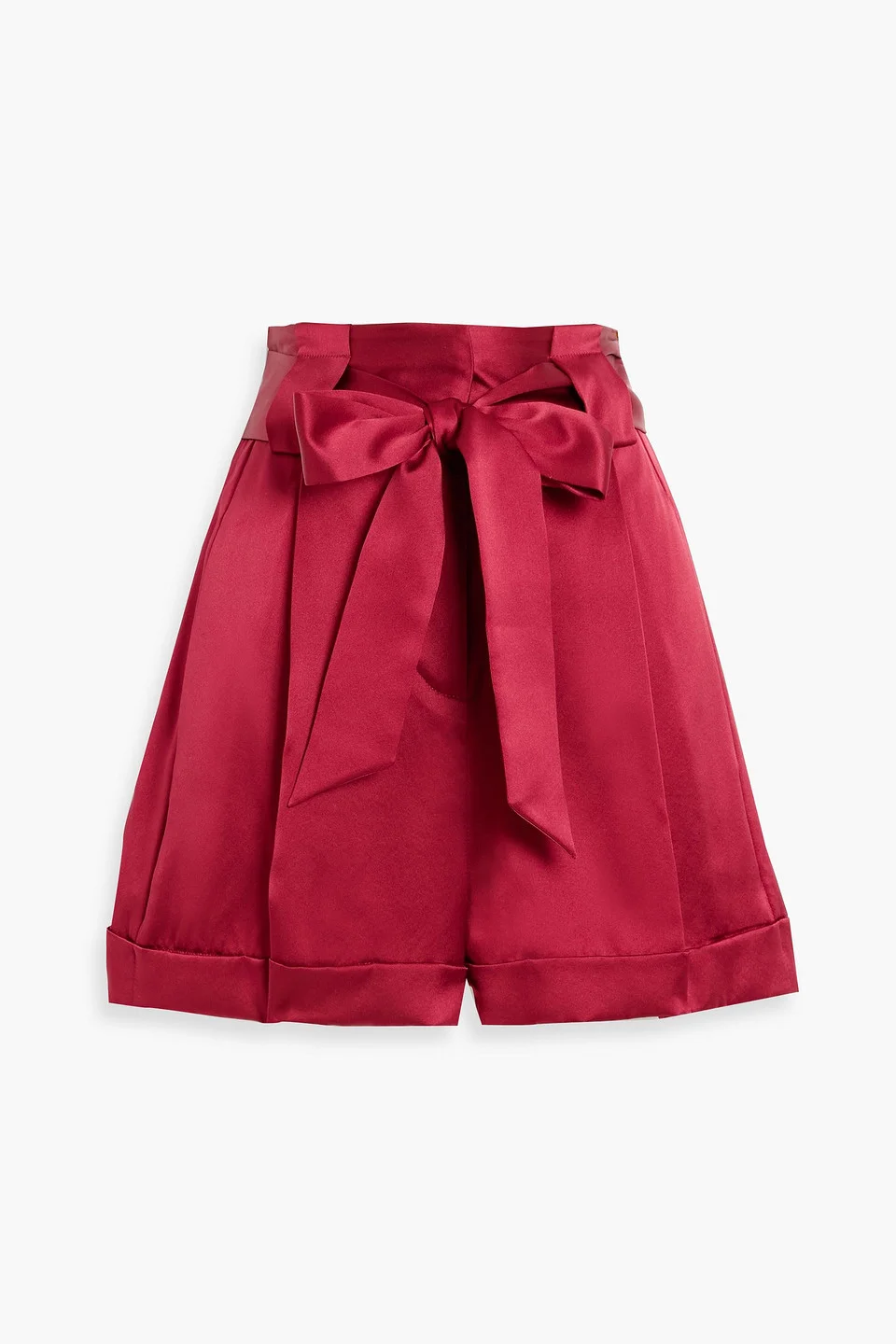 Shorts silk-satin pleated high-rise cut detachable waist tie front slant pockets folded cuffs concealed hook, button and zip fastening at front mid-weight, non-stretchy fabric dry clean 100% Silk Product Code 46376663163022458