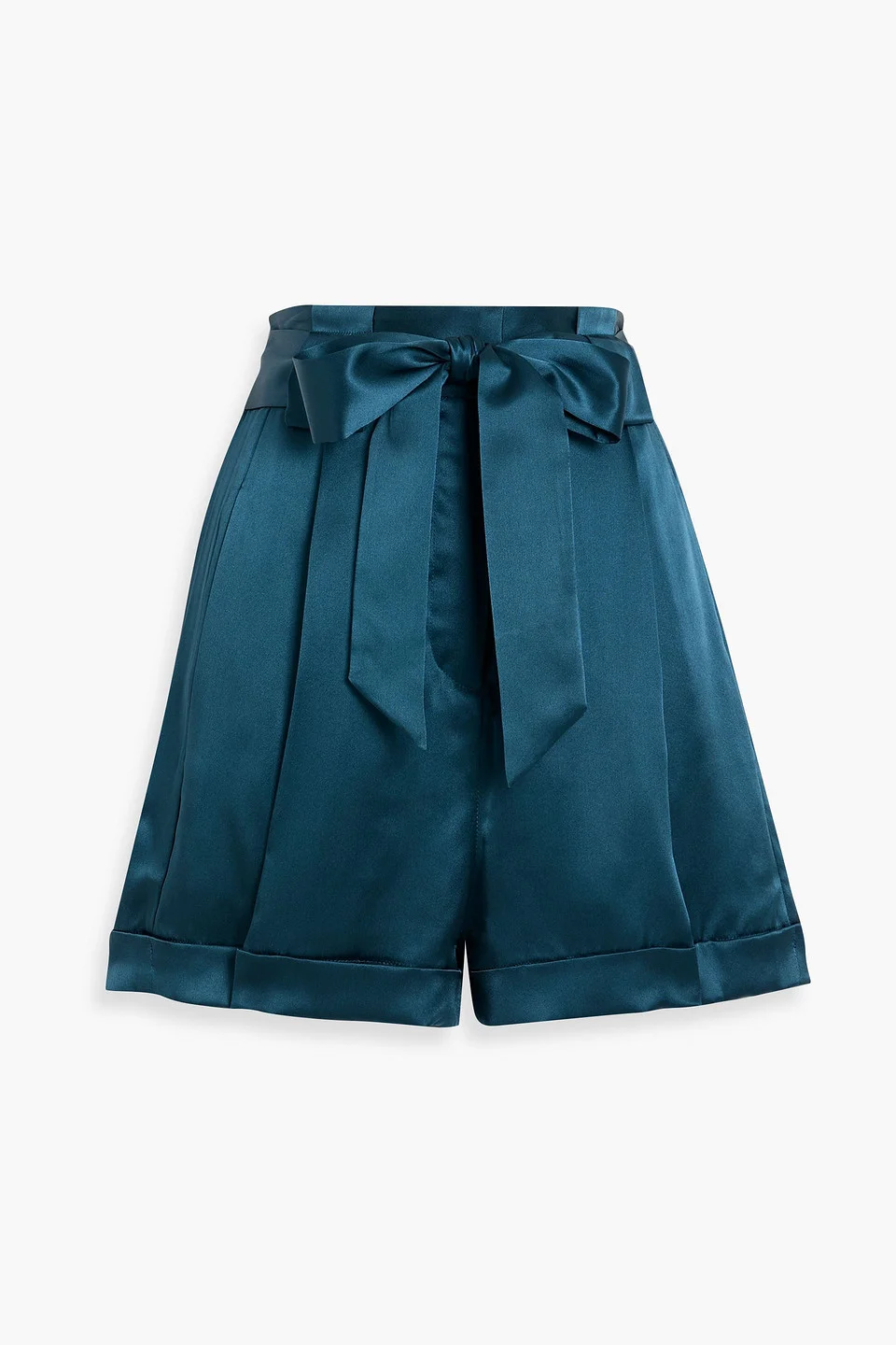 Shorts silk-satin pleated high-rise cut detachable waist tie front slant pockets folded cuffs concealed hook, button and zip fastening at front mid-weight, non-stretchy fabric dry clean 100% Silk Product Code 46376663163022417