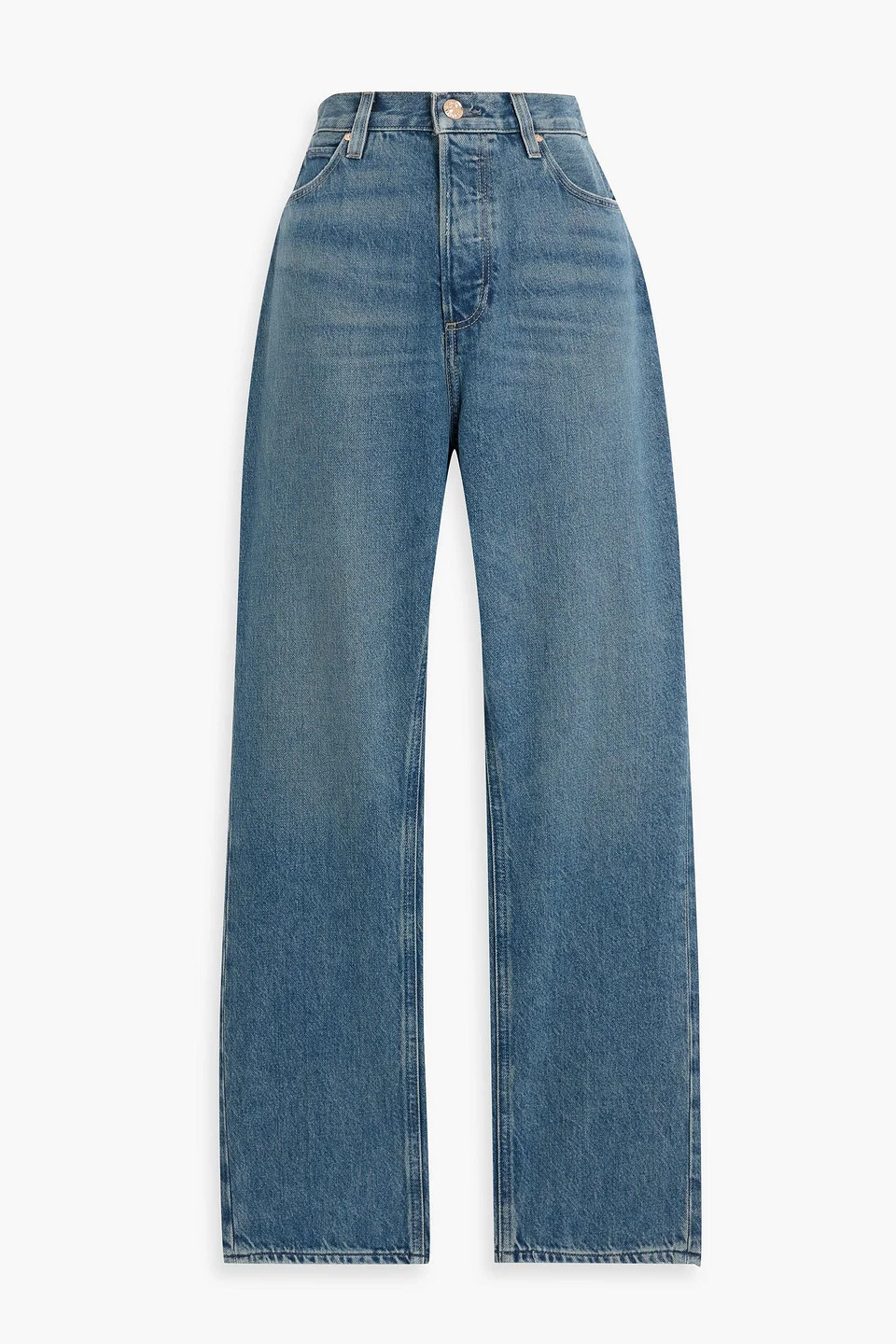 Straight-leg jeans denim belt loops high-rise cut five pockets partially concealed button fastenings along front mid-weight, non-stretchy fabric machine wash imported 100% Cotton Product Code 46376663162996814