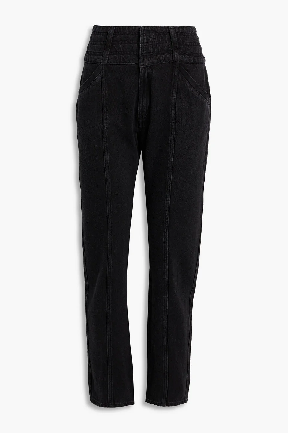 Tapered jeans denim belt loops high-rise cut multipockets concealed hook and zip fastening at front non-stretchy fabric mid-weight fabric machine wash imported 100% Cotton Product Code 1647597307098227