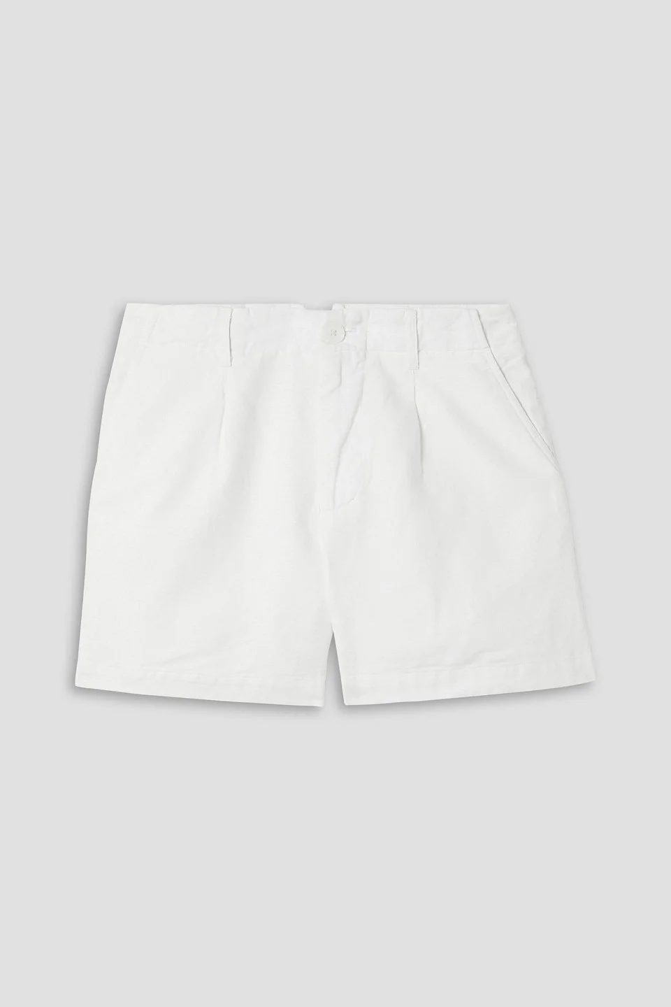 Shorts linen and cotton-blend belt loops high-rise cut two side slant pockets back flap pocket button and concealed zip fastening at front mid-weight, non-stretchy fabric machine wash imported 55% Linen 45% Cotton Product Code 1647597307050053