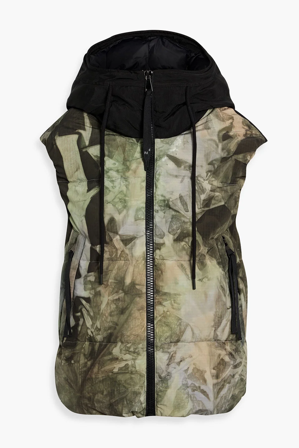 Canvas-paneled printed ripstop hooded vest