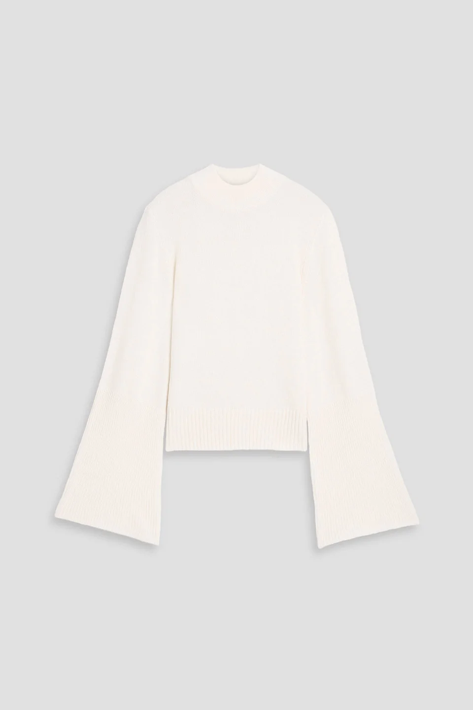 Sweater cashmere ribbed trims bell sleeves slips on mid-weight knit dry clean imported 100% Cashmere Product Code 46376663162956037
