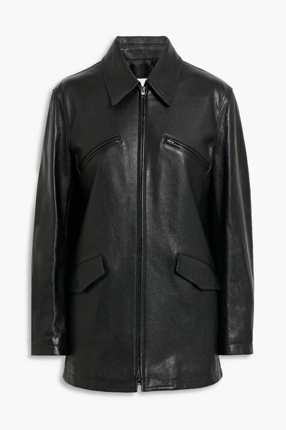 Jacket leather breast pockets front flap pockets concealed two-way zip fastening through front fully lined supple, non-stretchy leather specialist clean made in italy 100% Leather Product Code 46376663163005553