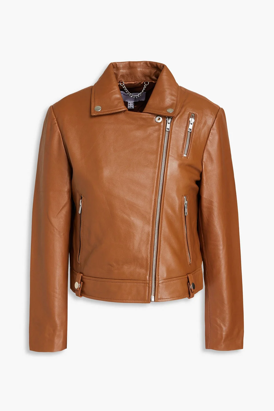 Biker jacket leather snap-fastening tabs zipped cuffs zip pockets asymmetric zip fastening through front fully lined supple, non-stretchy leather specialist clean imported 100% Sheepskin Product Code 1647597352294436