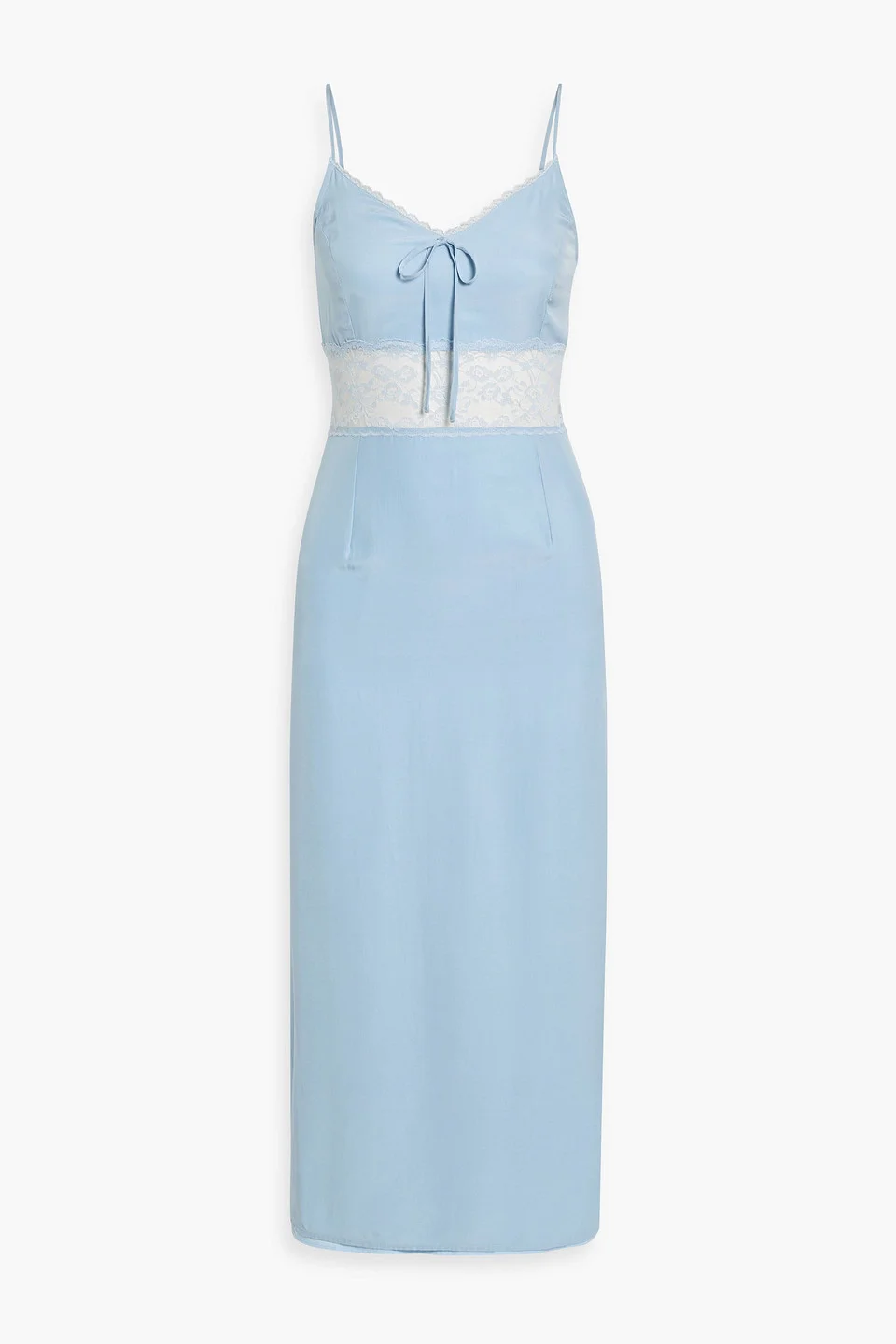 Dress corded lace silk-crepe paneled adjustable straps back slit concealed zip fastening along side mid-weight, non-stretchy fabric dry clean imported 100% Silk Product Code 1647597356591403