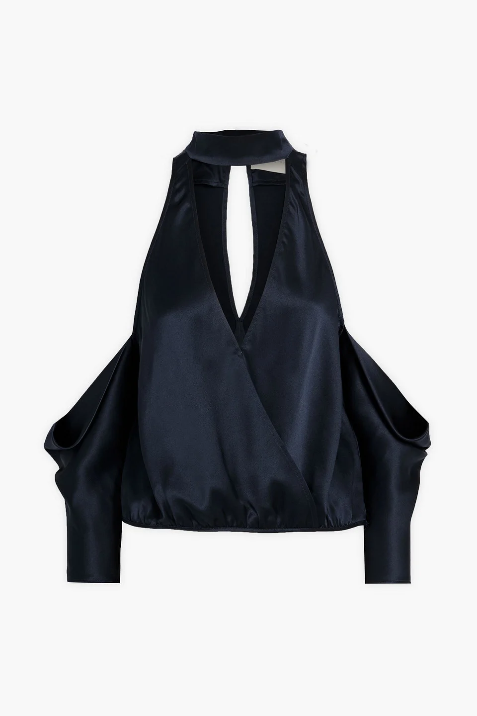 Cold-shoulder cutout silk-satin top