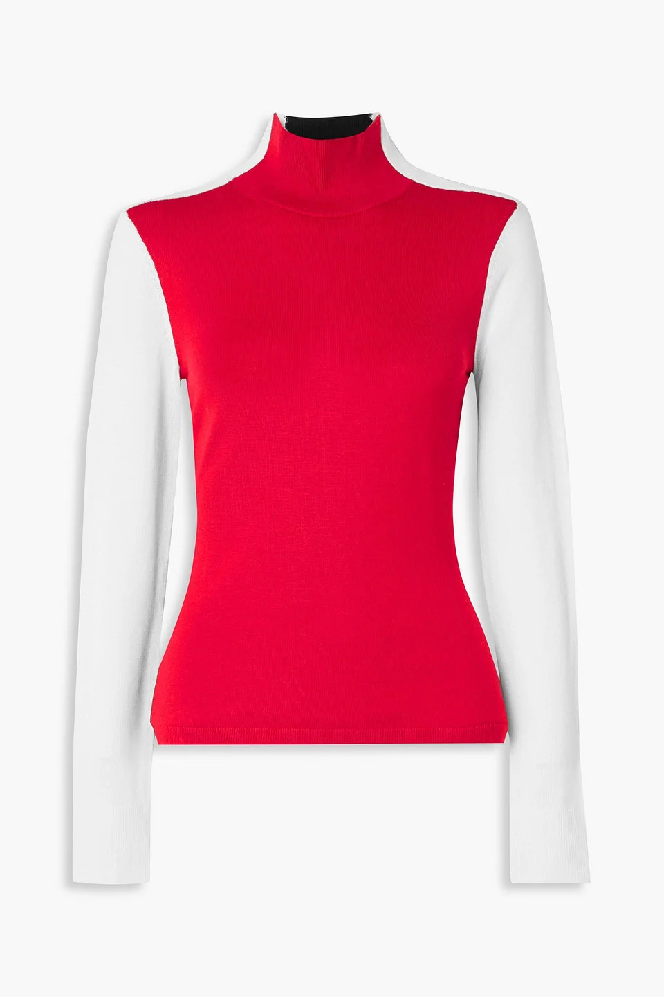 Turtleneck sweater color-block merino wool slips on mid-weight knit hand wash imported 100% Merino Wool Product Code 1647597305605489