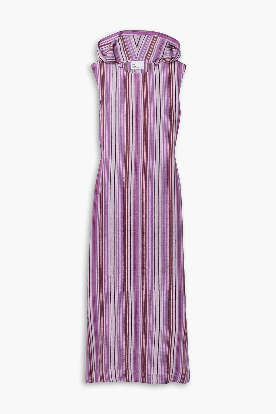 Dress striped gauze linen-blend hooded side splits slips on mid-weight, non-stretchy fabric hand wash Lisa Marie Fernandez's maxi dress is made from linen-blend gauze that has a naturally crinkled texture so you can wear it right out of your suitcase. It's patterned with tonal-purple stripes and has an oversized hood and side slits. 87% Linen 13% Nylon Product Code 1647597353151736