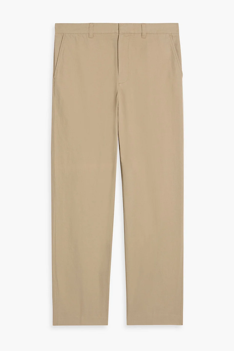 Pants twill cotton and linen-blend front slant pockets back welt pockets belt loops concealed hook, button and zip fastening at front mid-weight, non-stretchy fabric dry clean imported 57% Cotton 43% Linen Product Code 46376663163018016