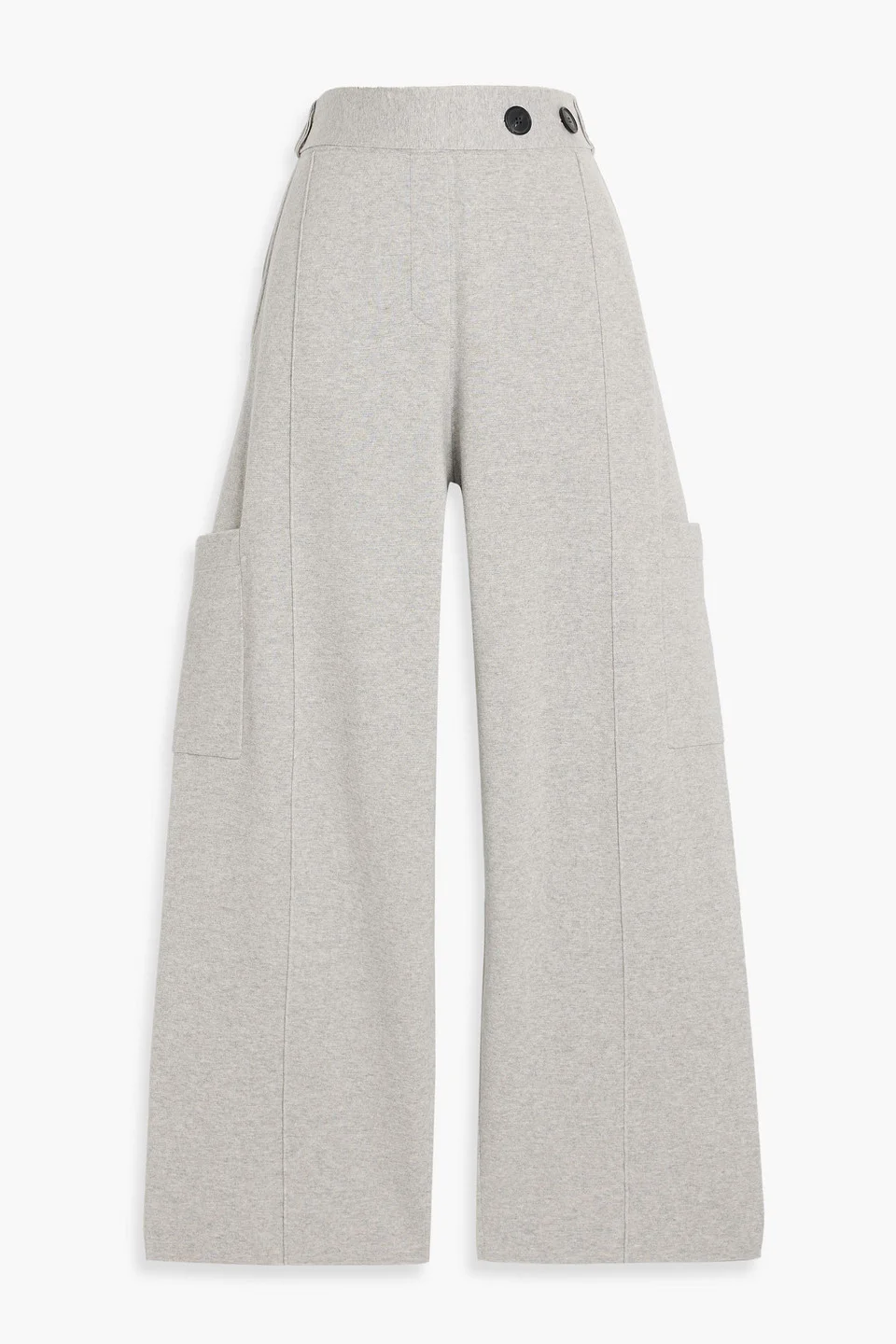 Wide-leg pants cotton and wool-blend front slant pockets side patch pockets elasticated waist belt loops high-rise cut pull on mid-weight knit dry clean imported 85% Cotton 15% Wool Product Code 46376663163096265