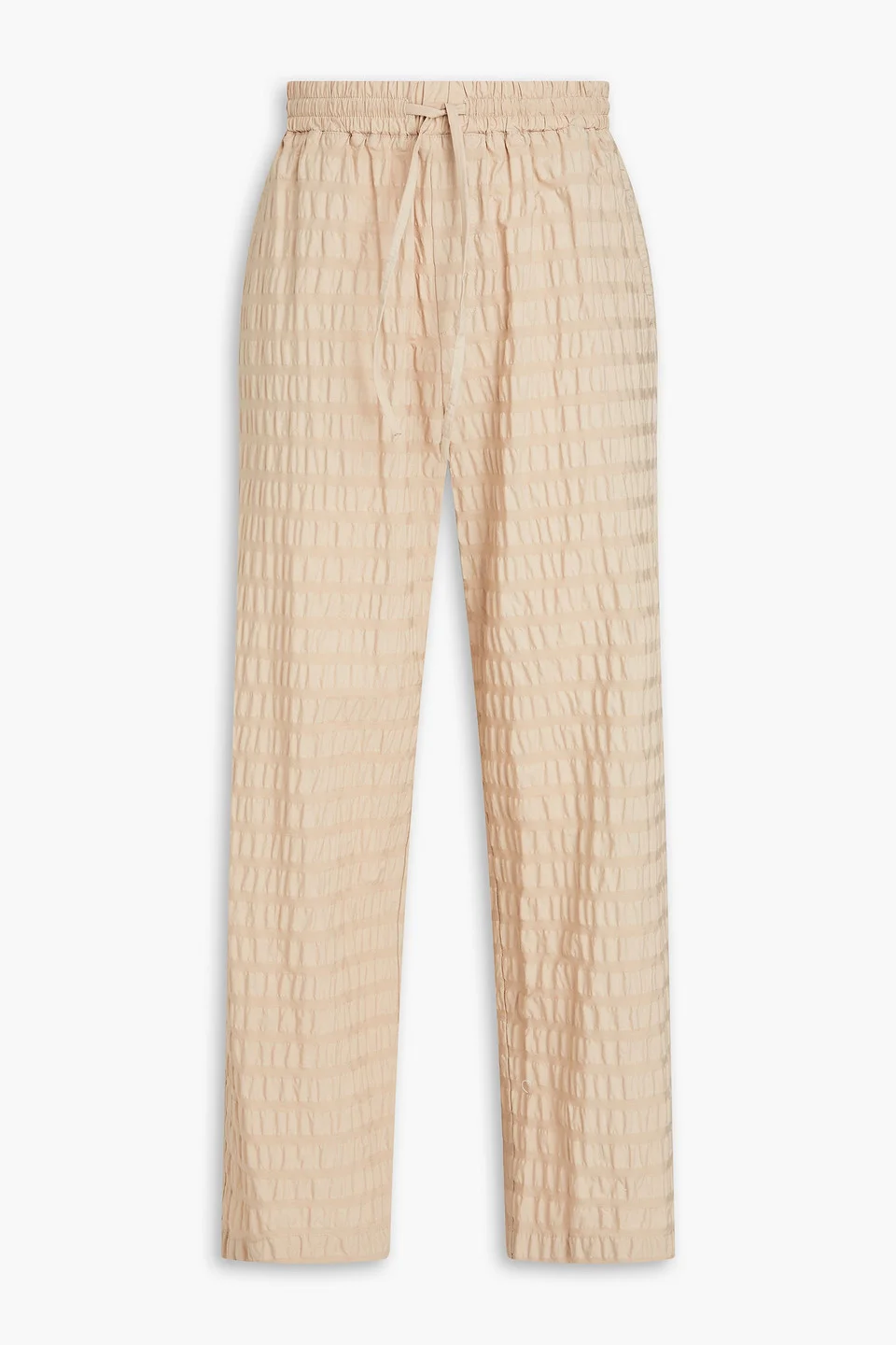 Pants seersucker cotton-blend two side welt pockets two back welt pockets elasticated drawstring waist pull on mid-weight, non-stretchy fabric dry clean imported 100% Cotton Product Code 1647597352374693