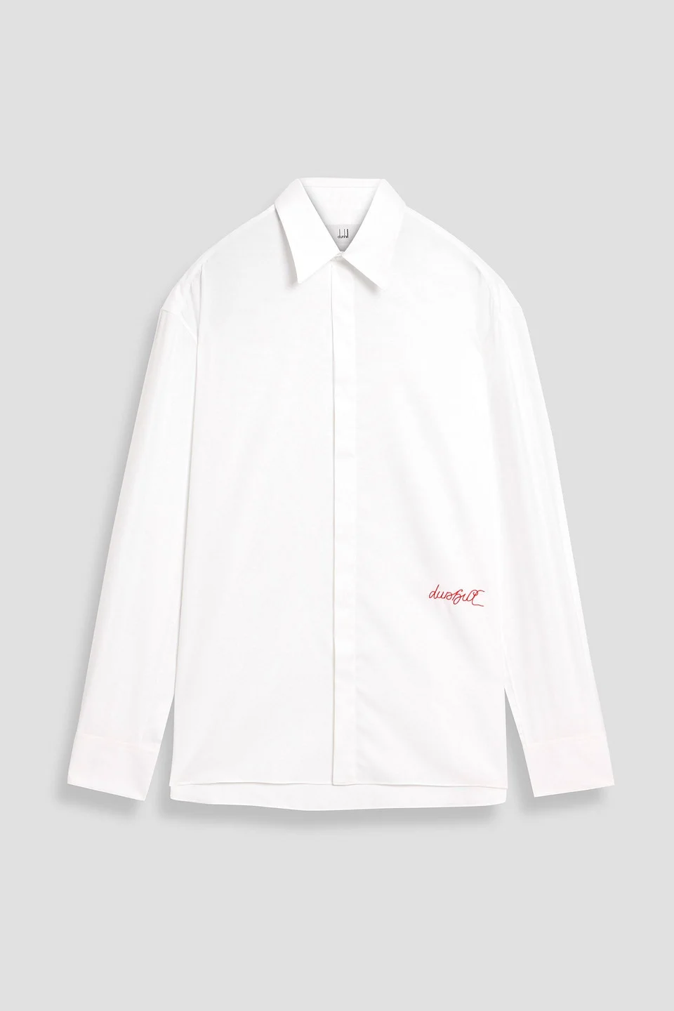Shirt cotton oxford embroidered classic collar long sleeves buttoned cuffs partially concealed button fastenings through front mid-weight, non-stretchy fabric dry clean made in italy 100% Cotton Product Code 46376663163042322