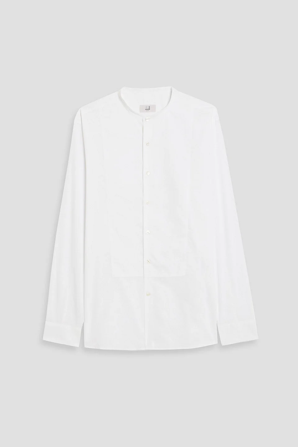Shirt cotton-poplin mandarin collar long sleeves buttoned cuffs button fastenings through front mid-weight, non-stretchy fabric dry clean imported 100% Cotton Product Code 46376663163099976