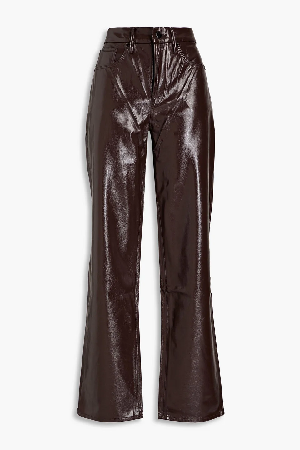 Crinkled coated straight-leg pants
