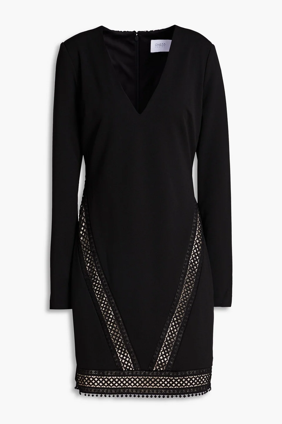 Dress stretch-jersey crocheted lace trims shoulder pads concealed hook and zip fastening at back fully lined mid-weight, stretchy fabric hand wash or dry clean imported 95% Polyester 5% Spandex Product Code 1647597317062205