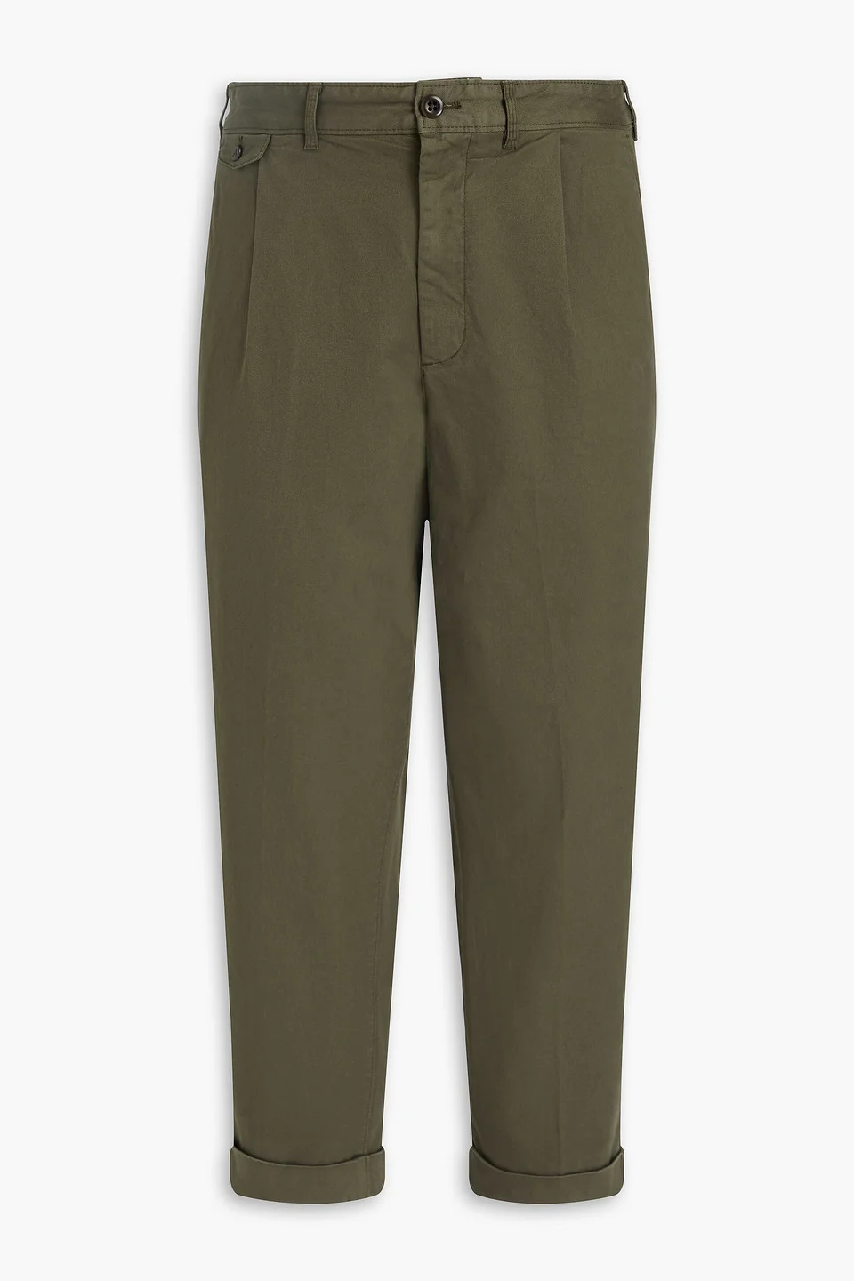 Chinos cotton-blend twill cropped pleated front slant pockets back welt pockets belt loops folded cuffs button and concealed zip fastenings at front mid-weight, non-stretchy fabric machine wash imported 98% Cotton 2% Elastane Product Code 46376663162915784