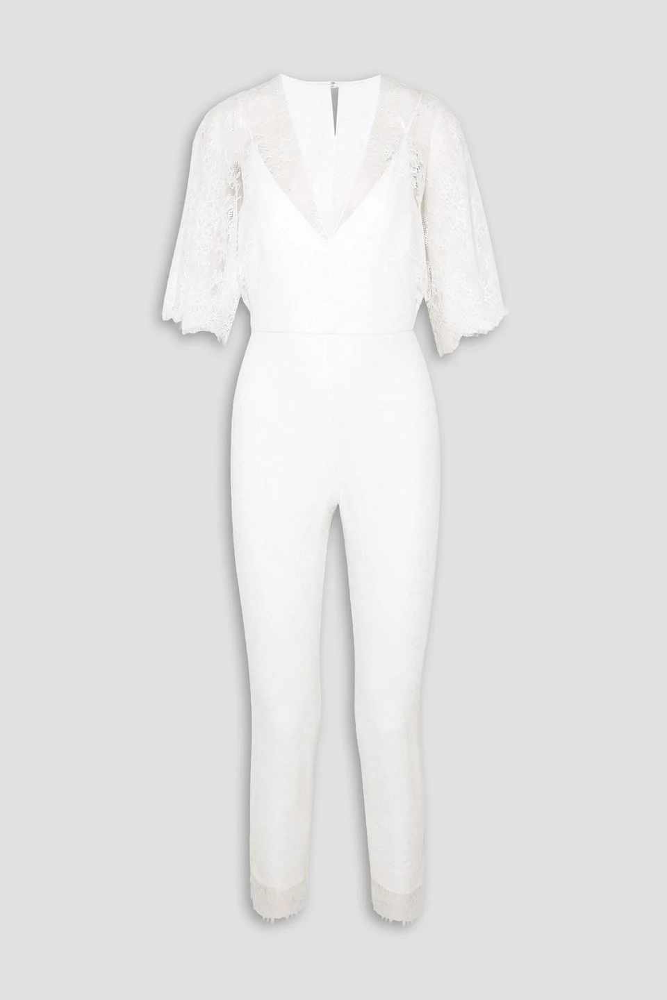 Jumpsuit lace cropped scalloped eyelash trims button-fastening keyhole at back concealed zip fastening along back fully lined non-stretchy fabric mid-weight fabric dry clean 97% Viscose 3% Elastane Product Code 1647597304685064