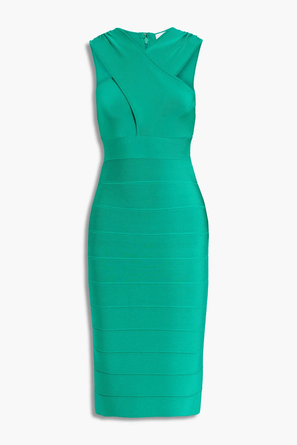Dress bandage crossover front concealed hook and zip fastening at back back split stretchy fabric mid-weight knit hand wash or dry clean imported 91% Rayon 8% Nylon 1% Spandex Product Code 34344356237182390