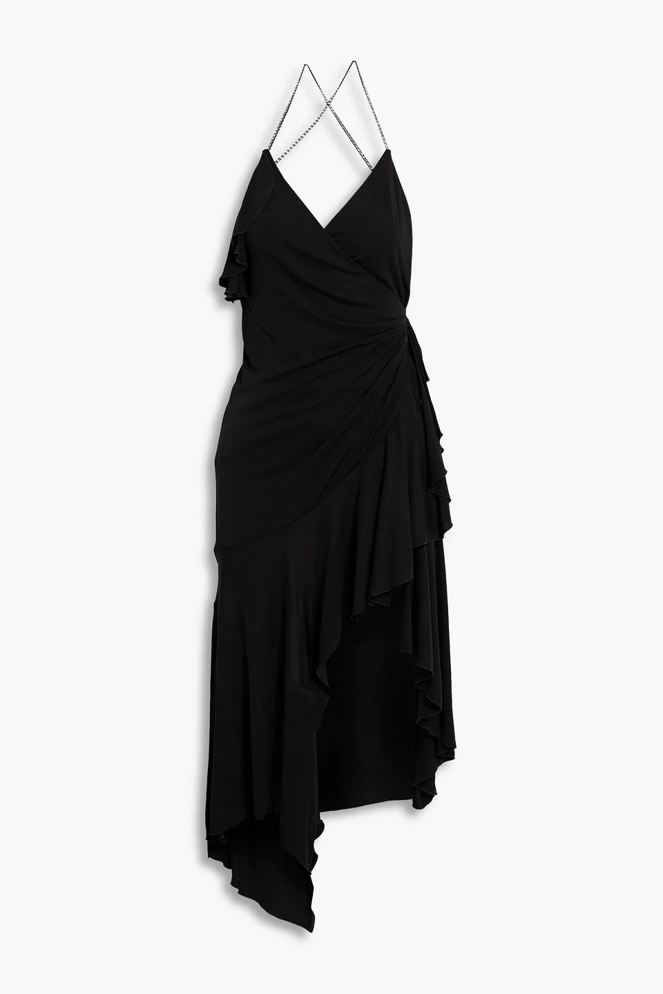 Dress jersey crystal embellishment draped crossover straps asymmetric hem slips on non-stretchy fabric mid-weight fabric dry clean imported 100% Viscose Product Code 1647597289616823