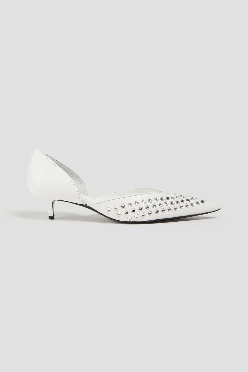 Pumps leather crystals pointed toe kitten heel slip on leather sole made in italy 100% Ovine leather Product Code 1647597346809722