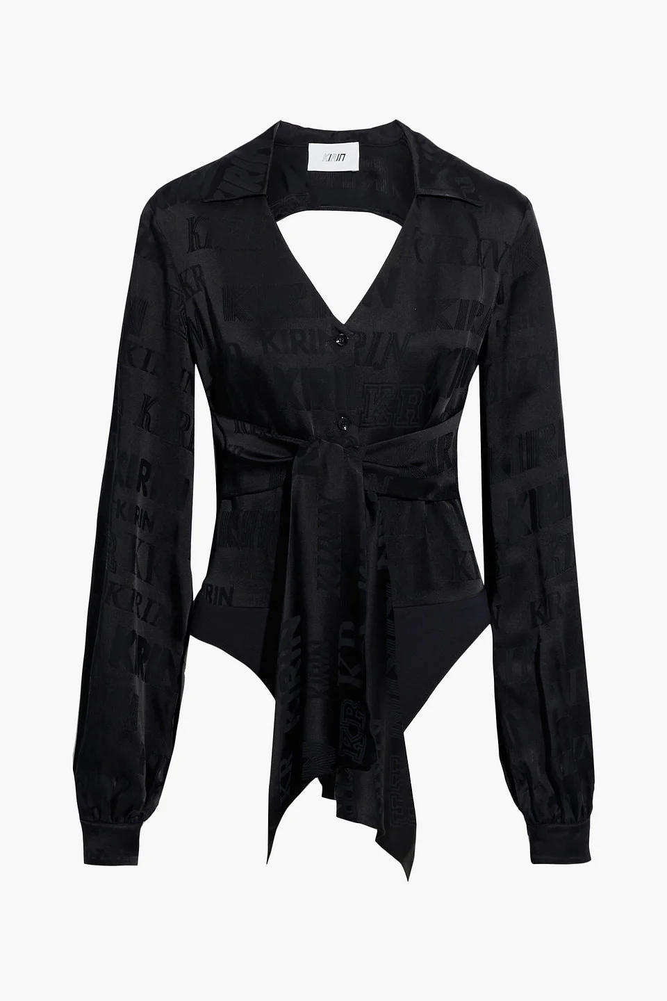 Bodysuit satin-jacquard jersey paneled cutout waist ties buttoned cuffs snap fastenings at base button fastenings along front non-stretchy fabric mid-weight fabric machine wash or dry clean made in italy 50% Acetate 50% Viscose Product Code 38063312420086075