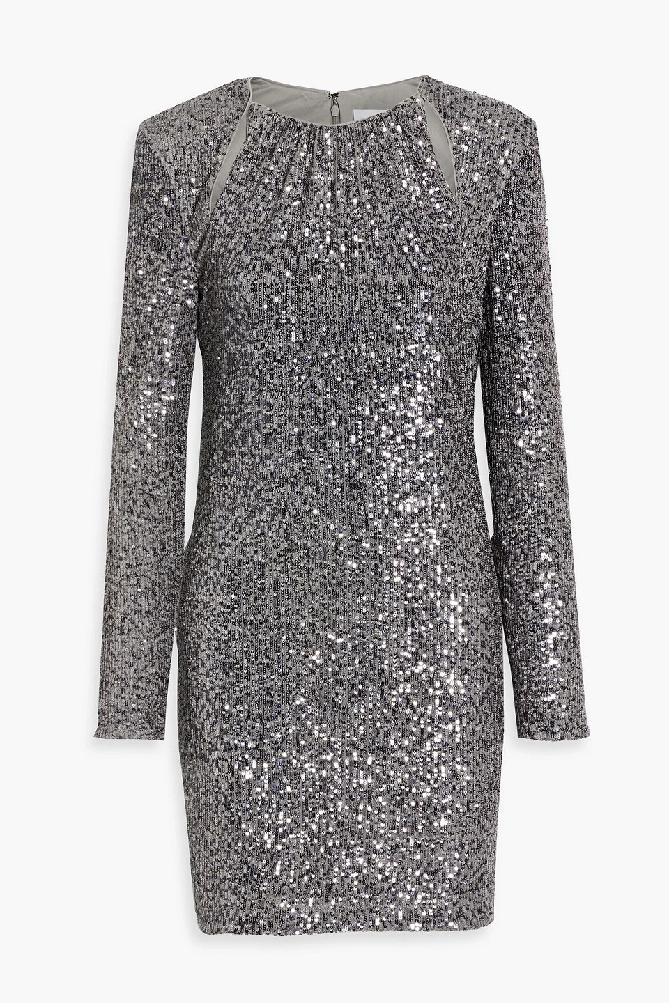 Dress stretch-tulle sequins cutout fully lined concealed hook and zip fastening at back stretchy fabric mid-weight fabric dry clean imported 98% Polyester 2% Spandex Product Code 1647597304501655