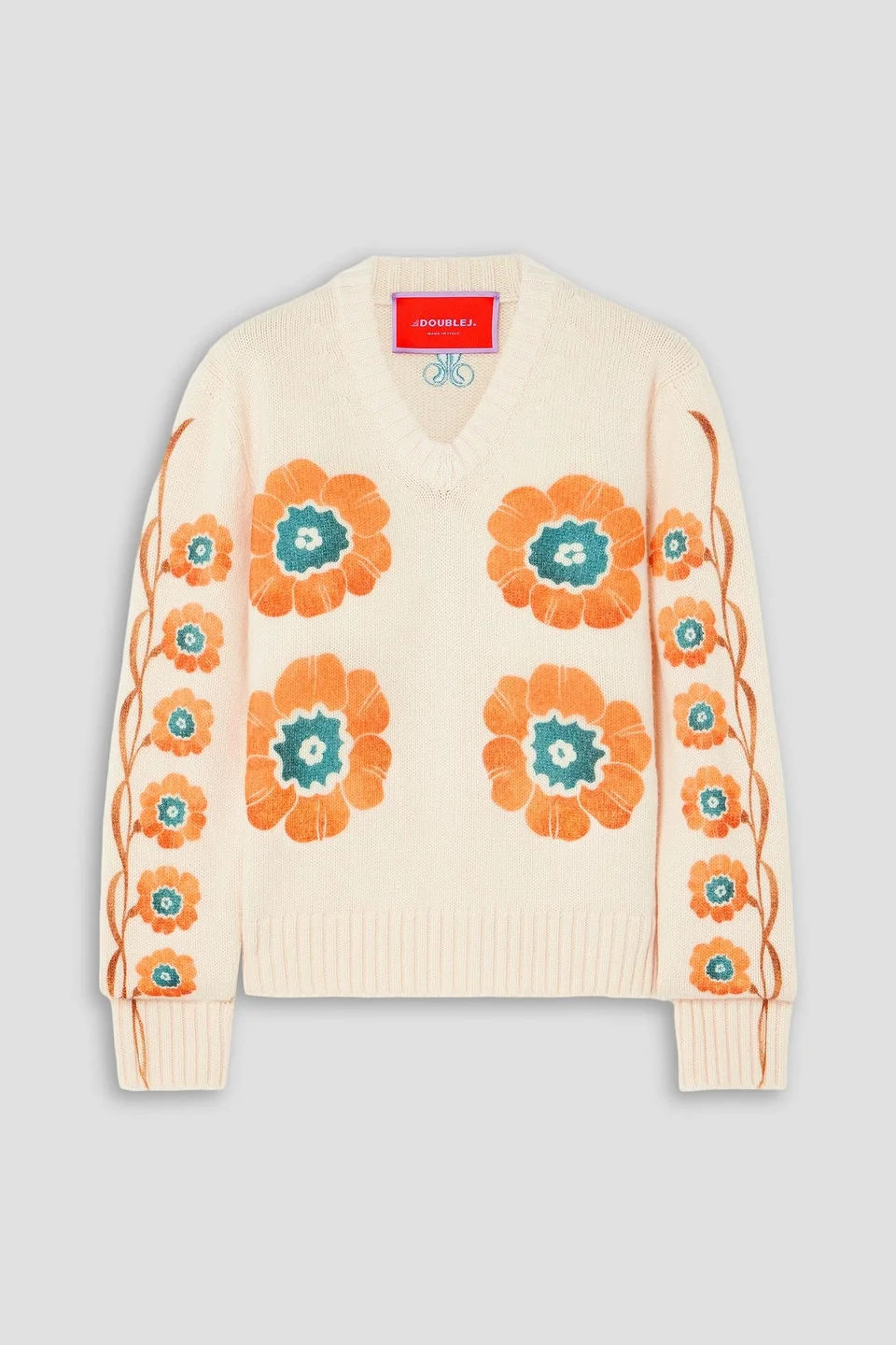 Sweater floral-print wool and cashmere-blend embroidered logo ribbed trims slips on dry clean made in italy 70% Wool 30% Cashmere Product Code 46376663163022691
